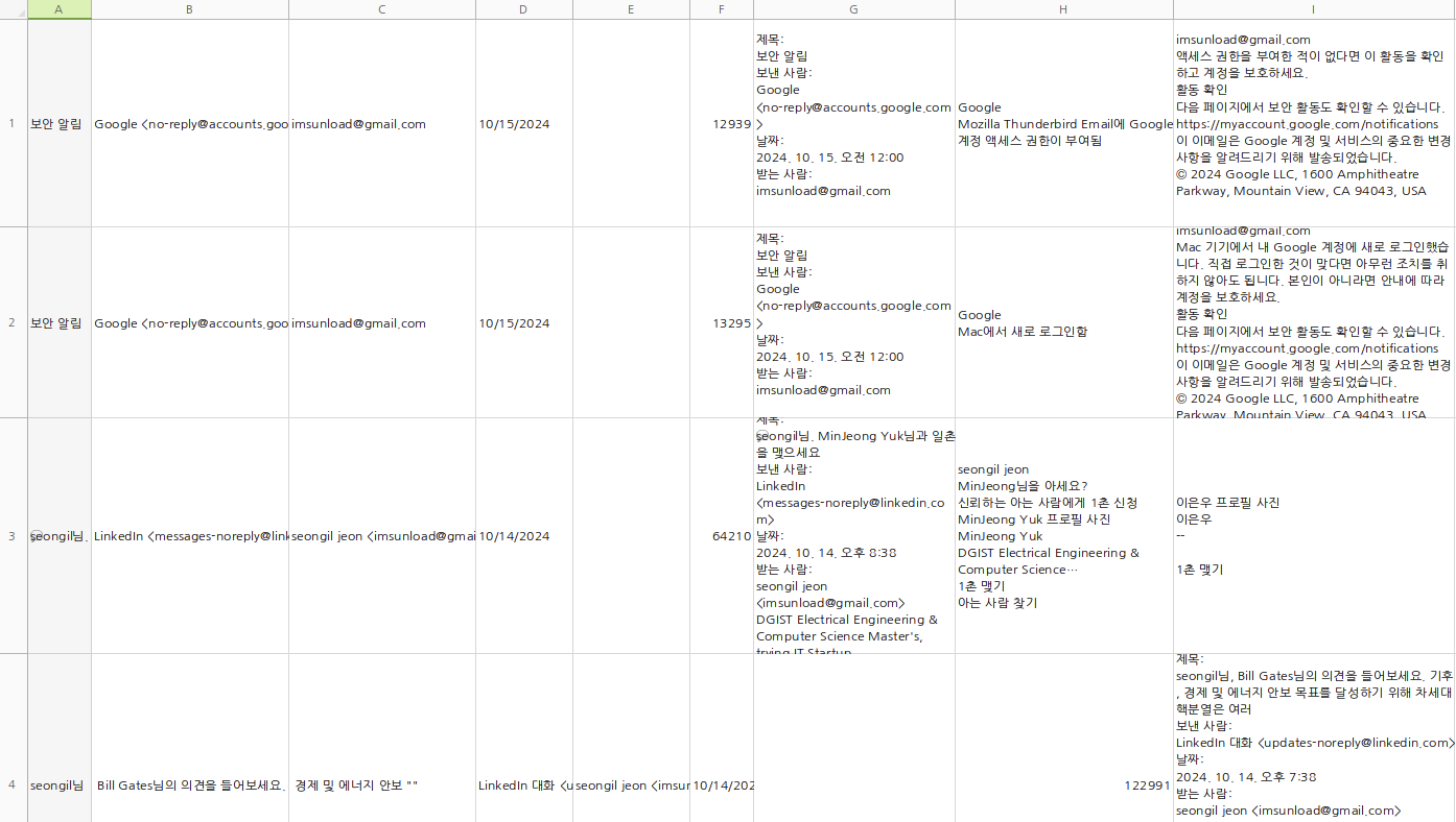 -Google Mail에서 정상 메일 데이터 수집하였습니다.